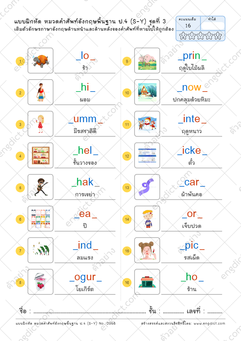 เติมตัวอักษรด้านหน้าและด้านหลังคำศัพท์