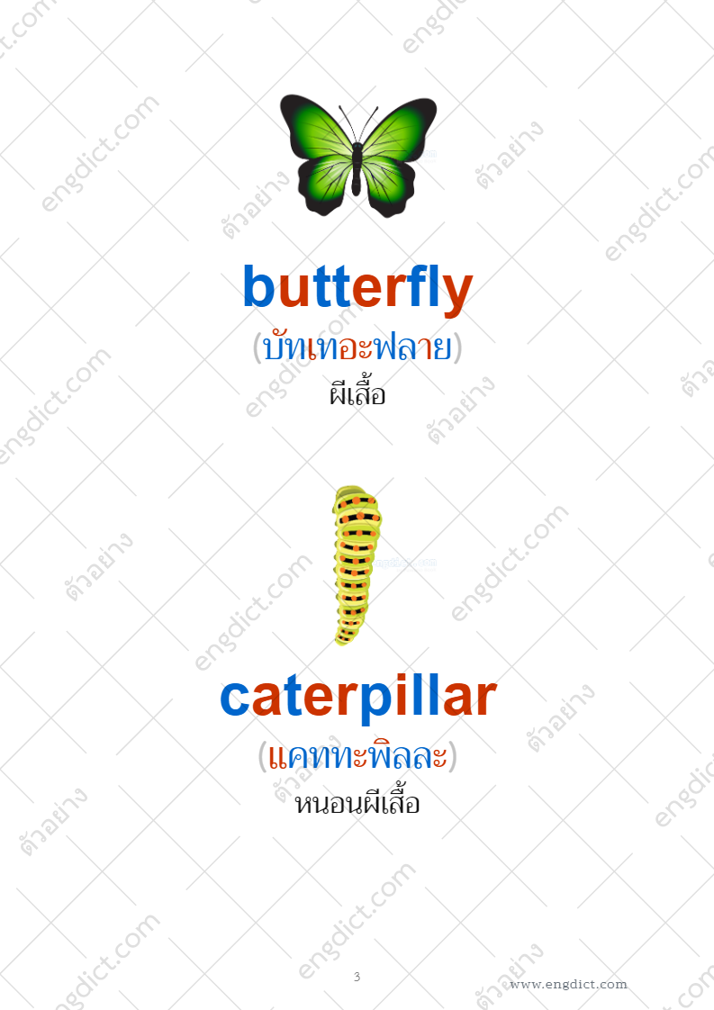 วิธีอ่านสีตัวอักษรคำศัพท์