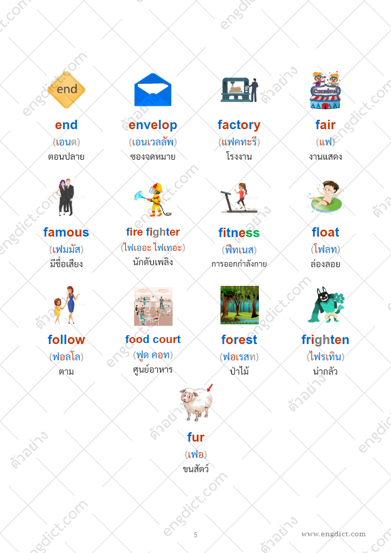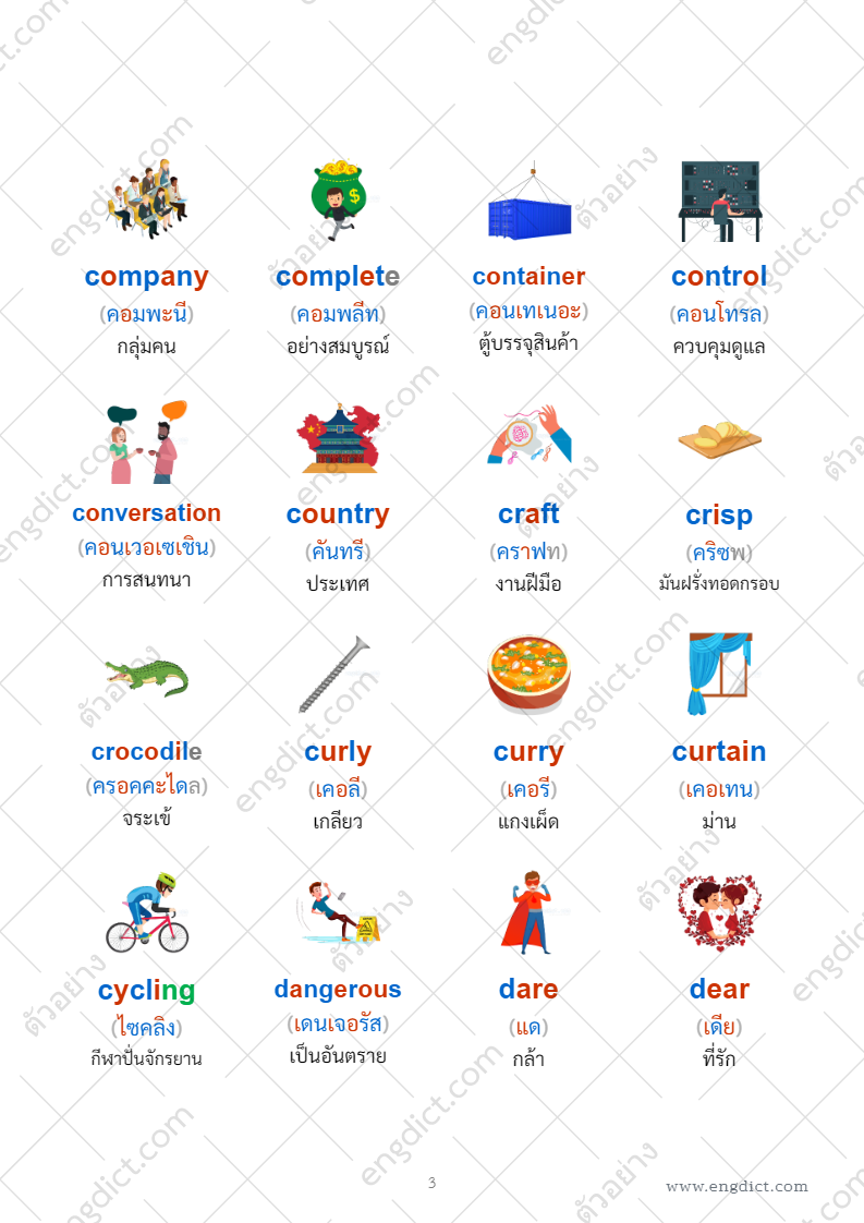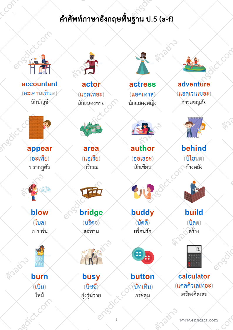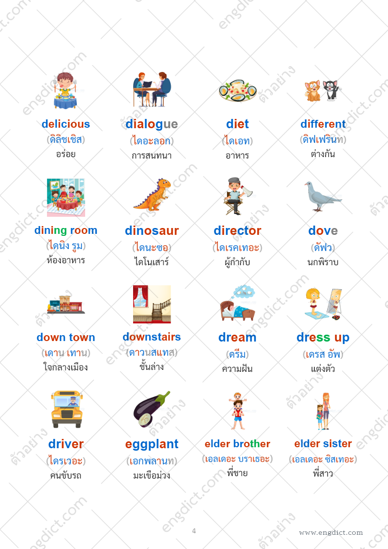 ภาพประกอบศัพท์ 4 คอลัมน์ (ไฮไลท์สี)