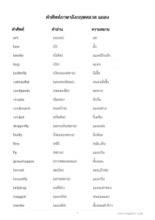 ดาวน์โหลดชุดคำศัพท์ #0114 แมลงต่างๆ