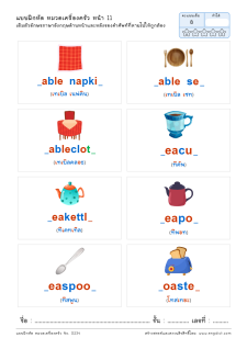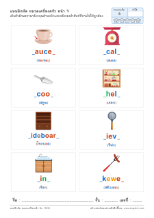 เติมตัวอักษรด้านหน้าและด้านหลังคำศัพท์