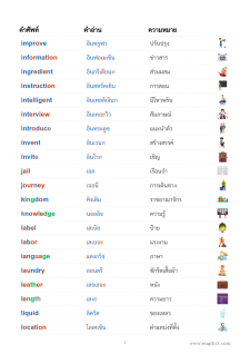 ภาพประกอบศัพท์ 3 คอลัมน์ (ไฮไลท์สี)