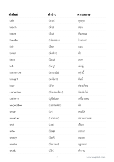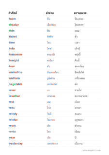 ตารางมีเฉพาะคำศัพท์