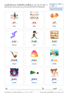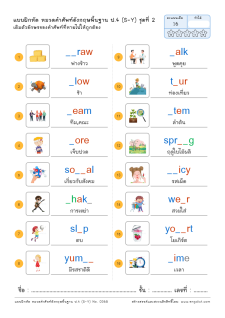 เติมพยัญชนะของคำศัพท์ที่หายไป (ตัวอักษรสีดำ)
