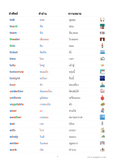 ภาพประกอบศัพท์ 3 คอลัมน์ (ไฮไลท์สี)