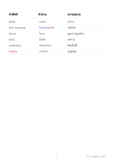 ตารางมีเฉพาะคำศัพท์ (ไฮไลท์สี)