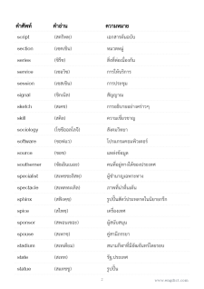 ตารางมีเฉพาะคำศัพท์ (ไฮไลท์สี)