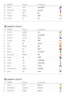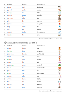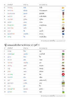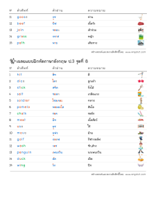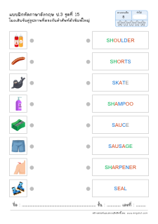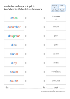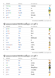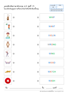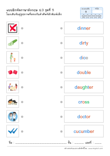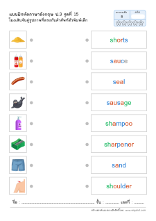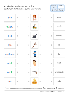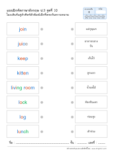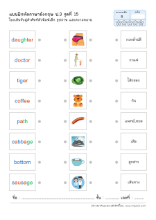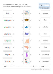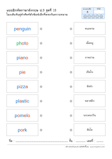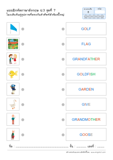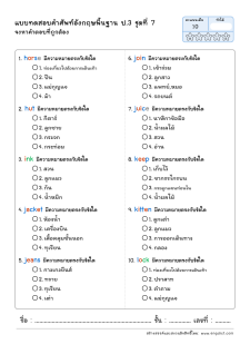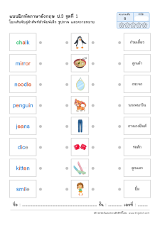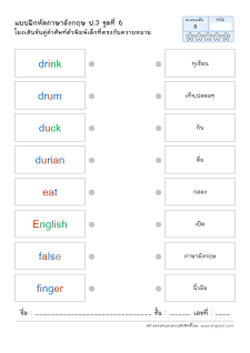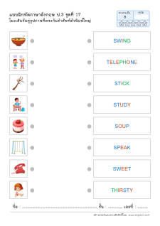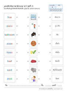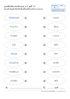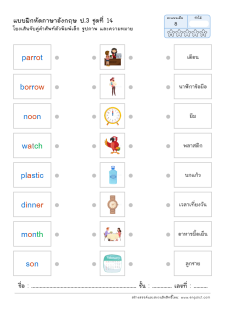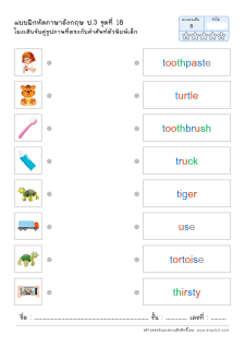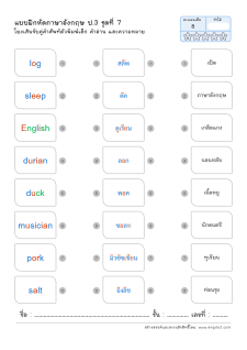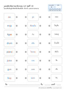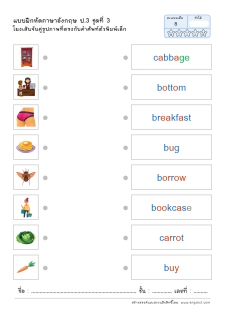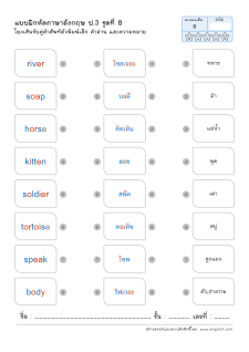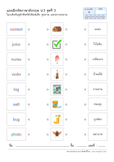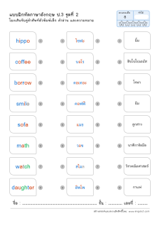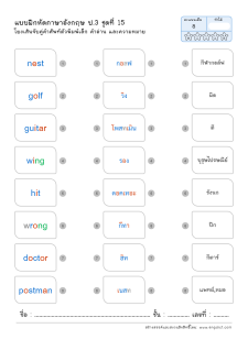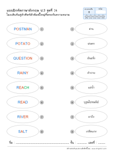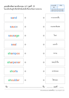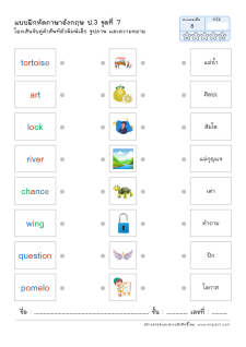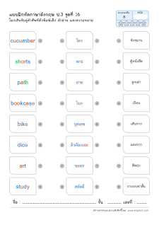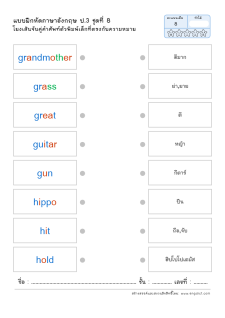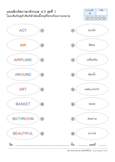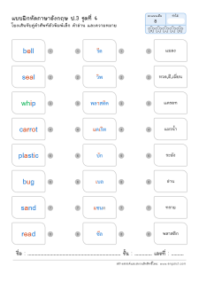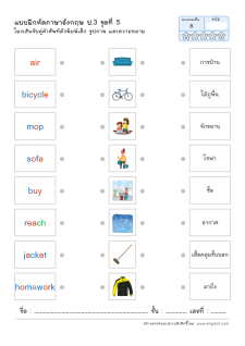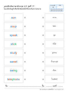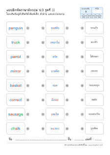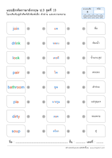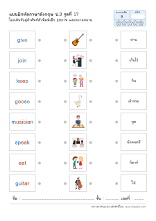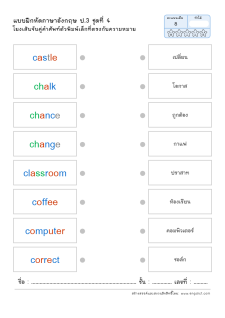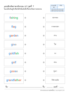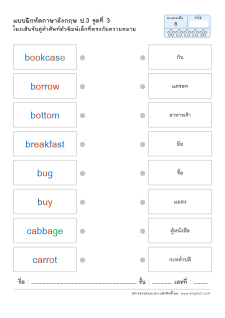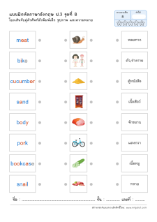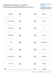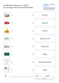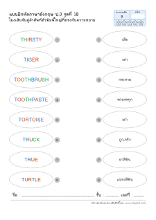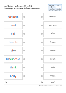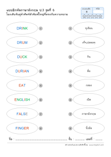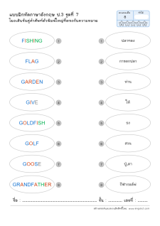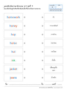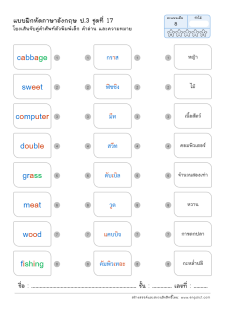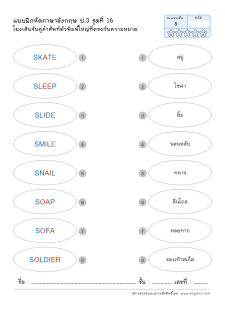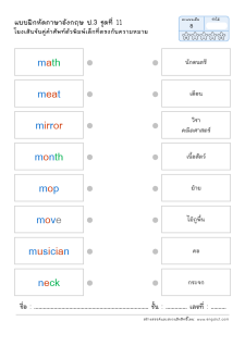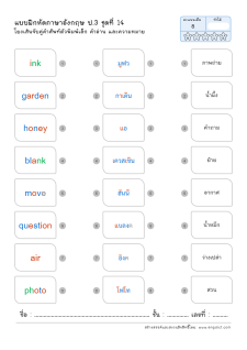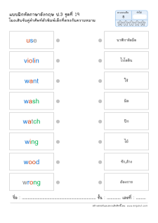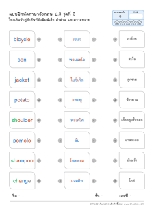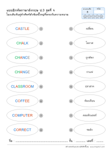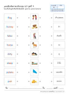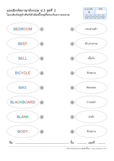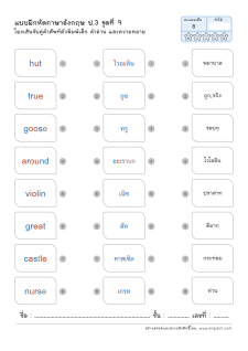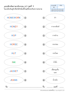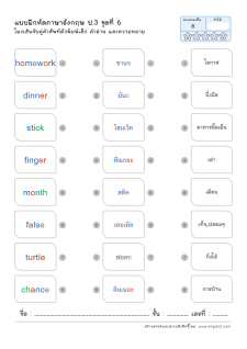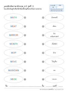 โยงเส้นจับคู่คำศัพท์ภาษาอังกฤษและความหมาย