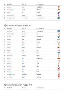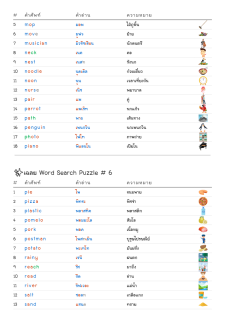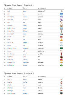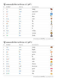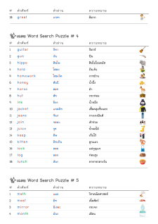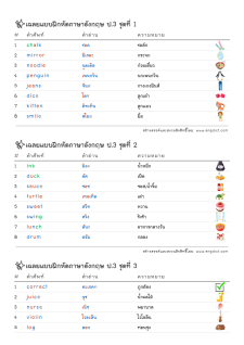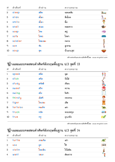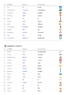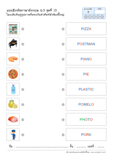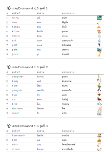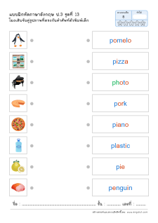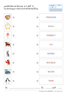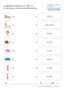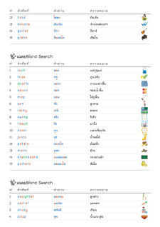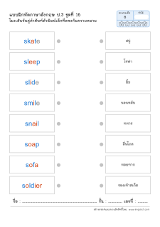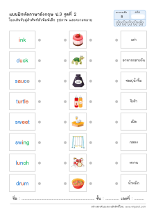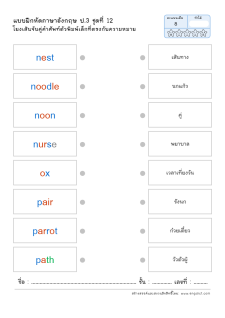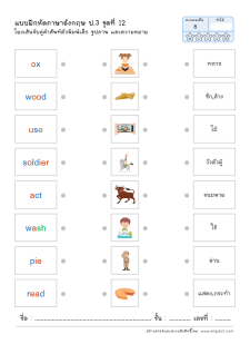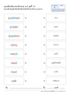 โยงเส้นจับคู่คำศัพท์ คำอ่าน และความหมาย