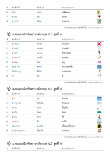 คำศัพท์ภาษาอังกฤษพื้นฐาน ป.3