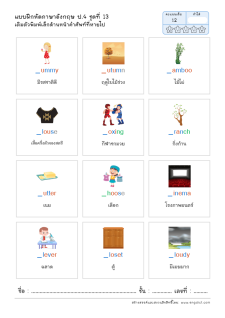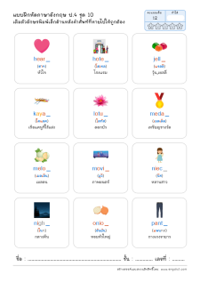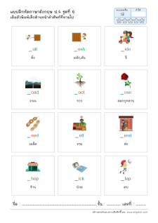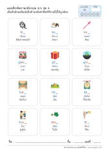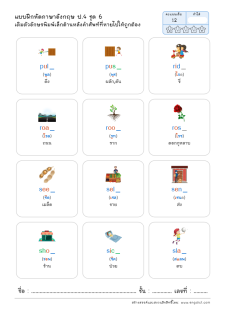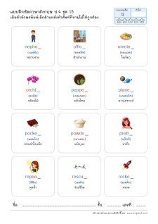 เติมตัวอักษรด้านหลังคำศัพท์ที่หายไป