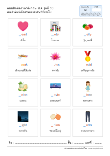 เติมตัวอักษรด้านหน้าคำศัพท์ที่หายไป