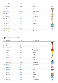 ภาพประกอบศัพท์ 3 คอลัมน์ (English)