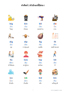 ดาวน์โหลดชุดคำศัพท์ #0608 คำศัพท์ 3 ตัวอักษรที่มีสระ I