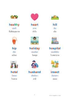 ภาพประกอบศัพท์ 3 คอลัมน์ (ไฮไลท์สี)